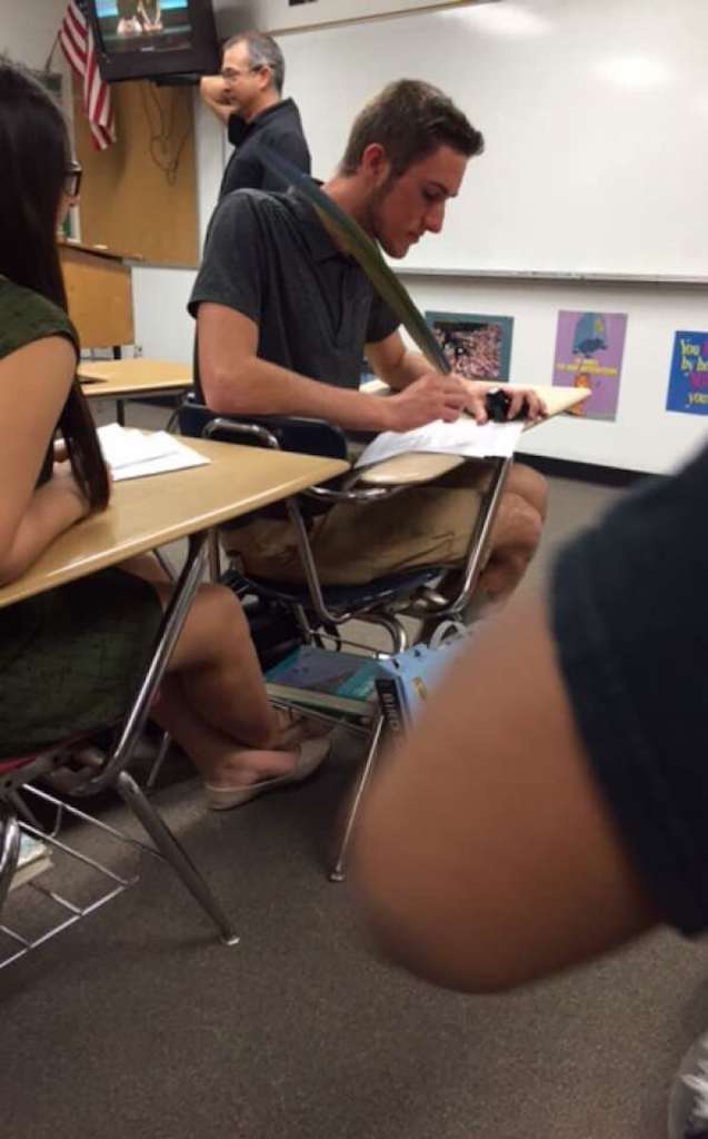 La palme revient à ce professeur qui a su renverser la situation… Les élèves avaient fait une farce à leur professeur en renversant leurs bureaux… il a décidé d’écrire de travers pour qu’ils puissent suivre le cours dans la position de leur table…