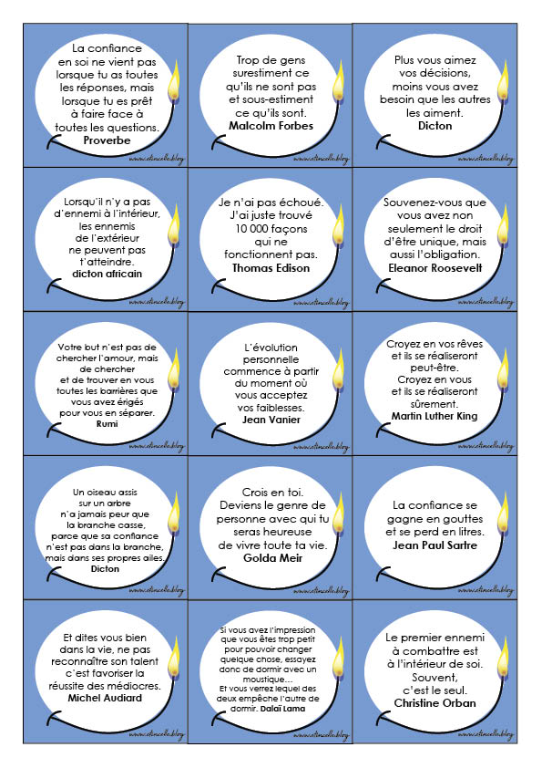 Je vous ai fait une sélection de citations inspirantes, sous formes de cartes. Vous pouvez les imprimer et les découper, en piocher une avec vos enfants pour en discuter.