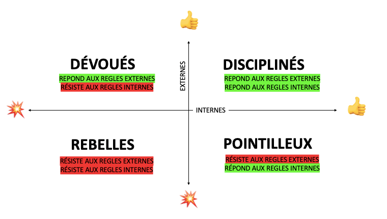 - les Disciplinés qui répondent à la fois aux règles internes ET aux règles externes